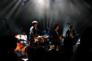 日> 14. Blues Power < 24日> 16. Blues Power 過去日本でもやっているこの歌ですが、いつの事やら全く覚えていないくらいに懐かしい曲です。(79年JustOneNightの時のツ アーでもやっているみたいだけど) これも今回のツアーで楽しみにしていた曲でした。 クリスのピアノもグーで始まり、ワンツースリーで入るアップテンポなこの曲、想像以上に良かったです。 まさに弾きまくりとしか言えない手数の多さで圧倒されました。 24日には最初3フレットにカポして登場したので、へーと思っていましたが、ソロ始まってからエリックさん、途中でカポ外して投げ捨ててやってました。 その後もソロ弾きまくって、ソロ後の歌に戻って来れずに歌に入れないほど弾いていました。 終わった後に、ドイルとなにやら笑いながら言いあってましたが、雰囲気的には”カポ付けたままソロは弾けないよ”って感じでした。 < 23日> 15. Love in Vain <24日> 17. Love in Vain これもドイル君のスライド、それにグレッグさんは? マンドリンみたいな小さいのを抱えて前出てきてました。 ポールさんは木ボードに口に管咥えるやつでやってました。 細かくは凝ってますなあ。 ドイル君のソロもなかなかうまかったです。 < 23日> 16. Crossroads <24日> 18. Crossroads かなりアップテンポです。このアップテンポでも走っ てしまわないのがドラムとベースのリズムのお二人の成す技という所でしょう。 かなり気持ちがいいテンポで良かったですが特に24日のソロは秀逸でした。 |